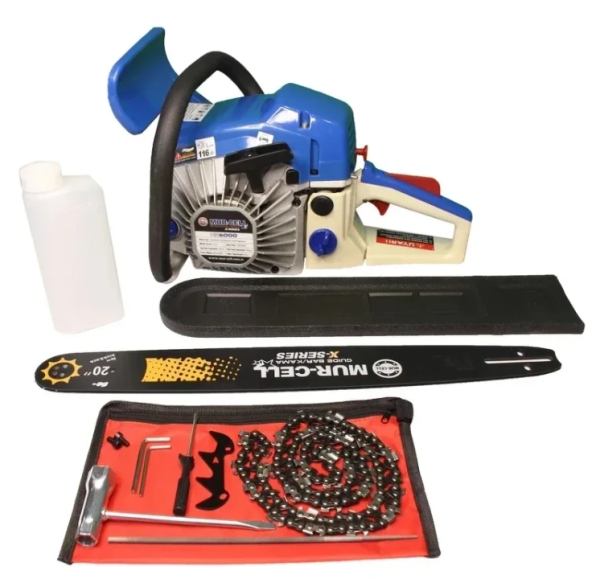 اره زنجیری بنزینی مورسل HR6000 با موتور قدرتمند ۵۵ سیسی و تیغه ۵۰ سانتیمتری، ابزاری ایدهآل برای کارگاهی، باغبانی و برشهای سنگین میباشد. سرعت زنجیر ~۳۰۰۰ دور/دقیقه با مخزن بنزین ۵۵۰ میلیلیتر و مخزن روغن ۲۶۰ میلیلیتر، شما را از توقفهای مکرر بینیاز میکند. وزن تقریباً ۷ کیلوگرم، همراه با هندل فلزی و کیفی کامل از لوازم جانبی – کیف حمل، سوهان، آچار، محافظ زنجیر و آلن.
