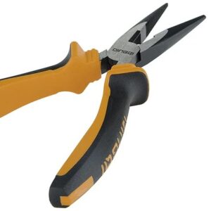 انبرها یکی از پرکاربردترین ابزارهای دستی هستند که انواع مختلفی دارند. انبر فوق نوعی انبر دم باریک بوده که برای انجام کارهای ظریف مورد استفاده قرار میگیرد. این انبر سایزی 6 اینچی دارد و طول آن حدود 16.5 سانتیمتر است. این محصول بسیاری از ویژگیهای یک انبردست را داشته و از آن برای مکانهایی با محدودیت فضا استفاده میشود. در شرایطی که فک انبردست برای عبور از محل مورد نظر بزرگ بوده و طول آن کوتاه باشد، انبر دم باریک با فک باریک و بلند خود به کمک شما خواهد آمد. این انبر دم باریک را شرکت دینگشی تولید کرده و برای بالا بردن مقاومت آن از ساختار کروم وانادیوم استفاده شده است. این ساختار استحکام بالایی دارد و بهراحتی دچار خوردگی و زنگزدگی نمیشود. طول دستهی این محصول حدود 10 سانتیمتر بوده و برای جلوگیری از لغزش دستان کاربر به روکشی لاستیکی مجهز شده است. فک این محصول برای نگه داشتن و بریدن مناسب بوده و ازدندانههای ریز و تیغهای تیز برخوردار است.
