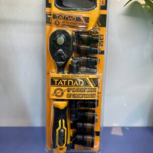 جعبه بکس 12 پارچه تات شامل 10 عدد بکس به شماره های 8،10،12،13،14،15،17،19،21،24 است و یک رابط به طول 12 سانتی متر و یک دسته جغجغه یک دوم با کیفیت عالی است.جعبه بکس 12 پارچه تی ای تی یک جعبه بکس فلزی است که 10 عدد بکس پرکاربرد همراه با یک رابط برای ایجاد اهرم بهتر و یک دسته جغجغه برای اعمال فشار برای باز و بسته کردن پیچ ها در داخل آن قرار دارد.رنگ بکس ها و اقلام همراه سیاه رنگ و کیفیت بسیار خوبی دارند. یکی از ویژگی های این جعبه بکس فلزی بودن ان است که به راحتی نمی شکند و از بکس ها و رابط در برابر فشار و ضربه مراقبت می کند.