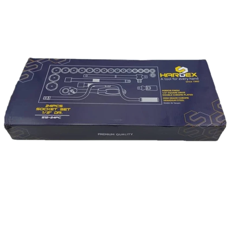 برند هاردکس دارای انواع جعبه بکس از جنس فولاد کروم وانادیوم است. تمامی جعبه بکسهای هاردکس دارای استاندارد DIN آلمان هستند. جعبه بکس ۲۴ پارچه هاردکس شامل مجموعه ۲۴ عددی از انواع سایزهای بکسو متعلقات درایو ۱⁄۲اینچ می باشد. همچنین این جعبه بکس دارای ۱۰ سال گارانتی تعویض است.