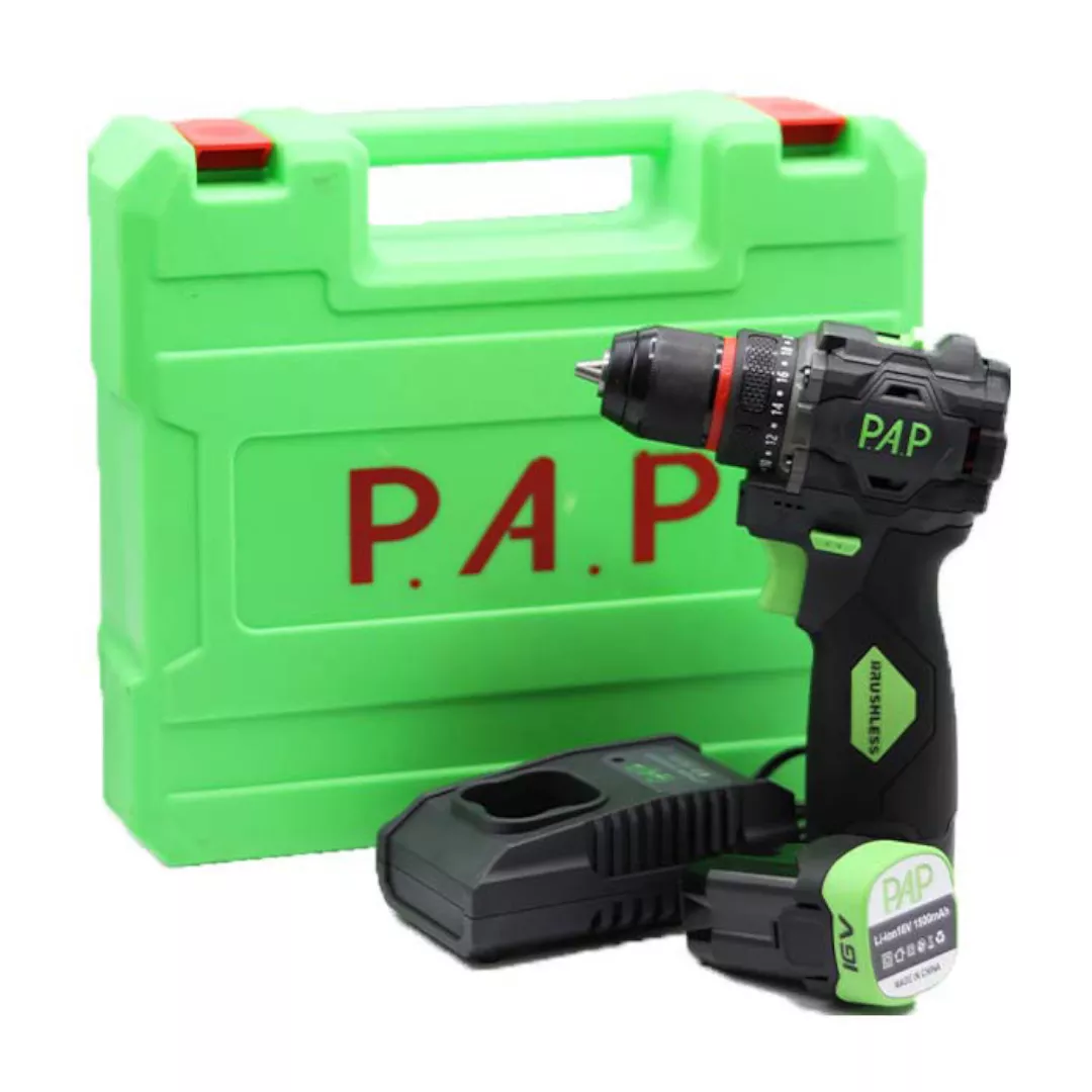 منبع تغذیه دریل شارژی PAP توسط یک باتری خشابی 16 ولت لیتیوم یون 1.5 آمپر است. استفاده از موتور گیربکسی 2 سرعته به کاربر امکان بهکار بردن دریل را در عملیات های سنگین و سرعتی میدهد. موتور پرتوان استفاده شده در دریل شارژی پی ای پی به کاربر امکان انجام عملیات های سوراخکاری و پیچبندی را در حالت اول در بازه قدرتی 450-0 و در حالت سرعتی در بازه 1800-0 دور بر دقیقه را میدهد. از این رو خیال کاربران از قدرت و توانایی کافی این دستگاه دریل راحت میکند.