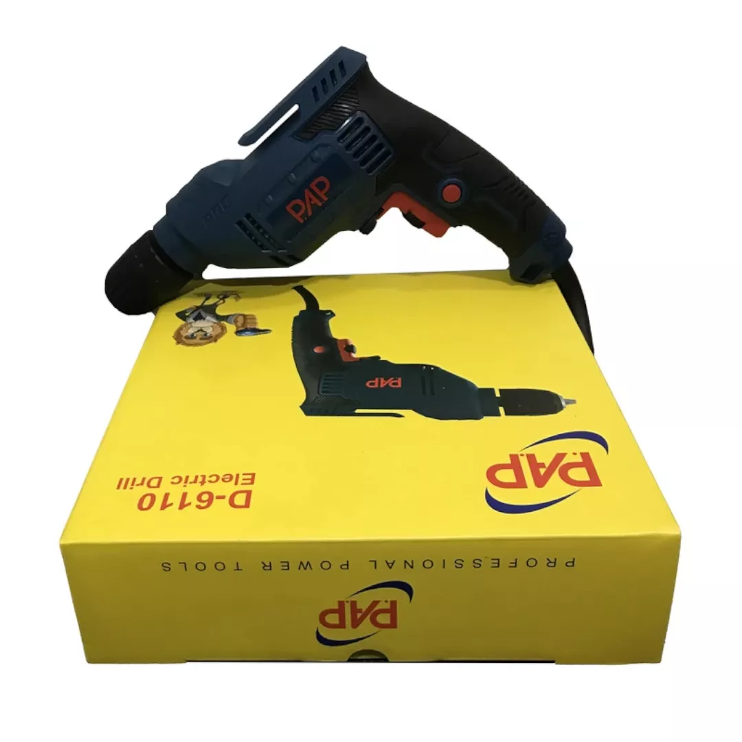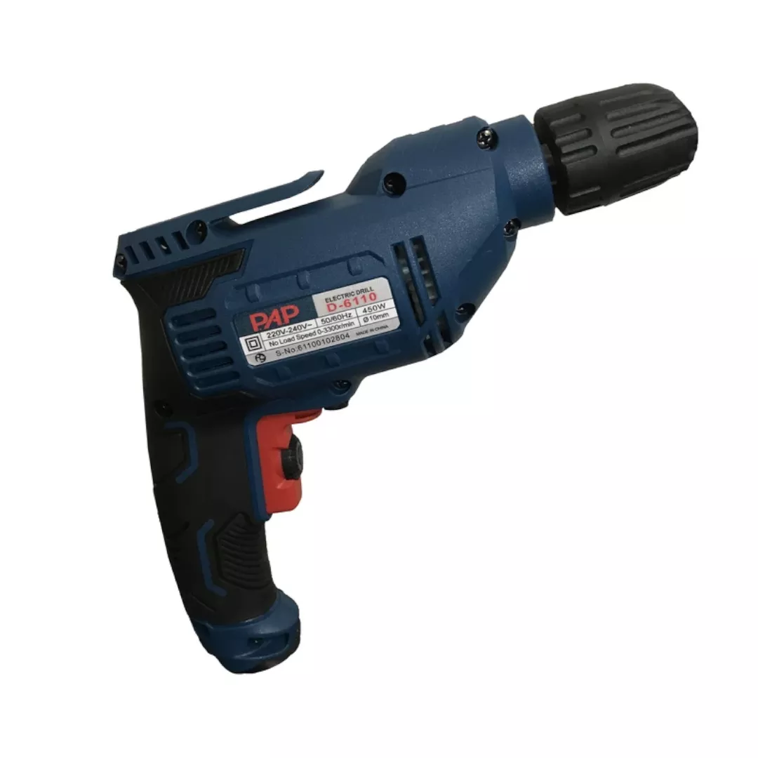 دریل 10 پی ای پی 450 وات مدل D-6110 مجهز شده به موتور 450 وات واقعی میباشد و قادر است در بازه سرعتی 0 الی 3300 دور بر دقیقه کار کند. همین سرعت بالا نشان از قدرت و کارآمد بودن این ابزار است. از مهمترین دلایل انتخاب یک دریل خانگی و کارگاهی خوب وزن و کیفیت بدنه میباشد، بدنه دریل 10 PAP ساخته شده از بهترین پلاستیک فشرده ممکن بوده و از وزن بسیار سبک 1250 گرمی برخوردار است. از این رو خیال کاربران از کار کردنهای طولانی مدت و یا در ارتفاع با این دستگاه راحت میباشد.