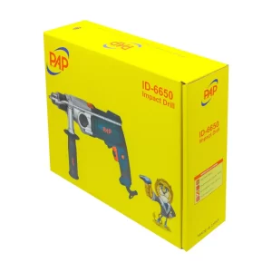 به همراه دریل 13 چکشی گیربکسی پی ای پی 1050 وات مدل ID-6650 یک جفت ذغال اضافه، دسته کمکی 360 درجه ای، آچار سه نظام، خط کش عمق سنج فلزی و دفترچه راهنما عرضه میباشد.