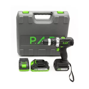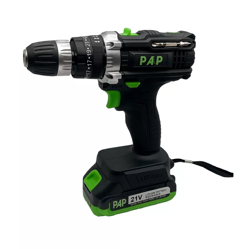 دریل شارژی چکشی PAP عرضه شده با یک موتور بسیار حرفهای براشلس 21 ولت میباشد که از باتریهای 1500 آمپر لیتیوم یونی تغذیه میکند. یکی از ویژگیهای برجسته دریل شارژی 21 ولت ، دارا بودن گیربکس چکشی دو سرعته است که به کاربر امکان انتخاب سرعت مناسب برای کارهای مختلف را میدهد که در حالت اول سرعتی برابر با 400-0 دور بر دقیقه و در حالت دوم بازه سرعتی 1350-0 دور بر دقیقه ایجاد میکند.