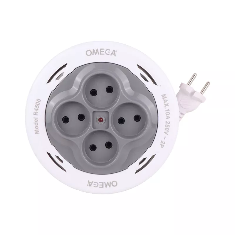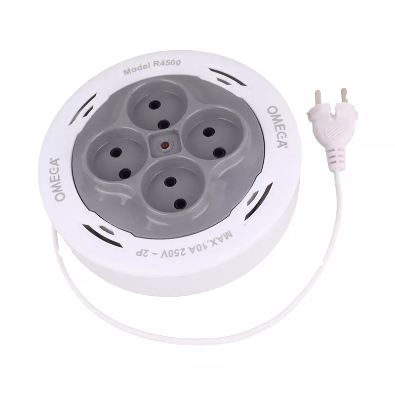 رابط (چند راهی) جمع شو مدل R4500 با کابل گرد یک ابزار الکتریکی پر کاربرد و ضروری در بازار لوازم جانبی الکترونیک و برق است که با برند امگا طراحی و تولید شده و در رنگ سفید به فروش می رسد. این رابط برق از یک دکمه روشن و خاموش و 4 پریز برق بهره برده است که امکان اتصال دستگاه های برقی و الکترونیکی همچون وسایل صوتی و تصویری،کامپیوتر، موبایل، تلویزیون، یخچال و فریز، دستگاه های دیجیتال، لوازم خانگی و … را فراهم می کند.