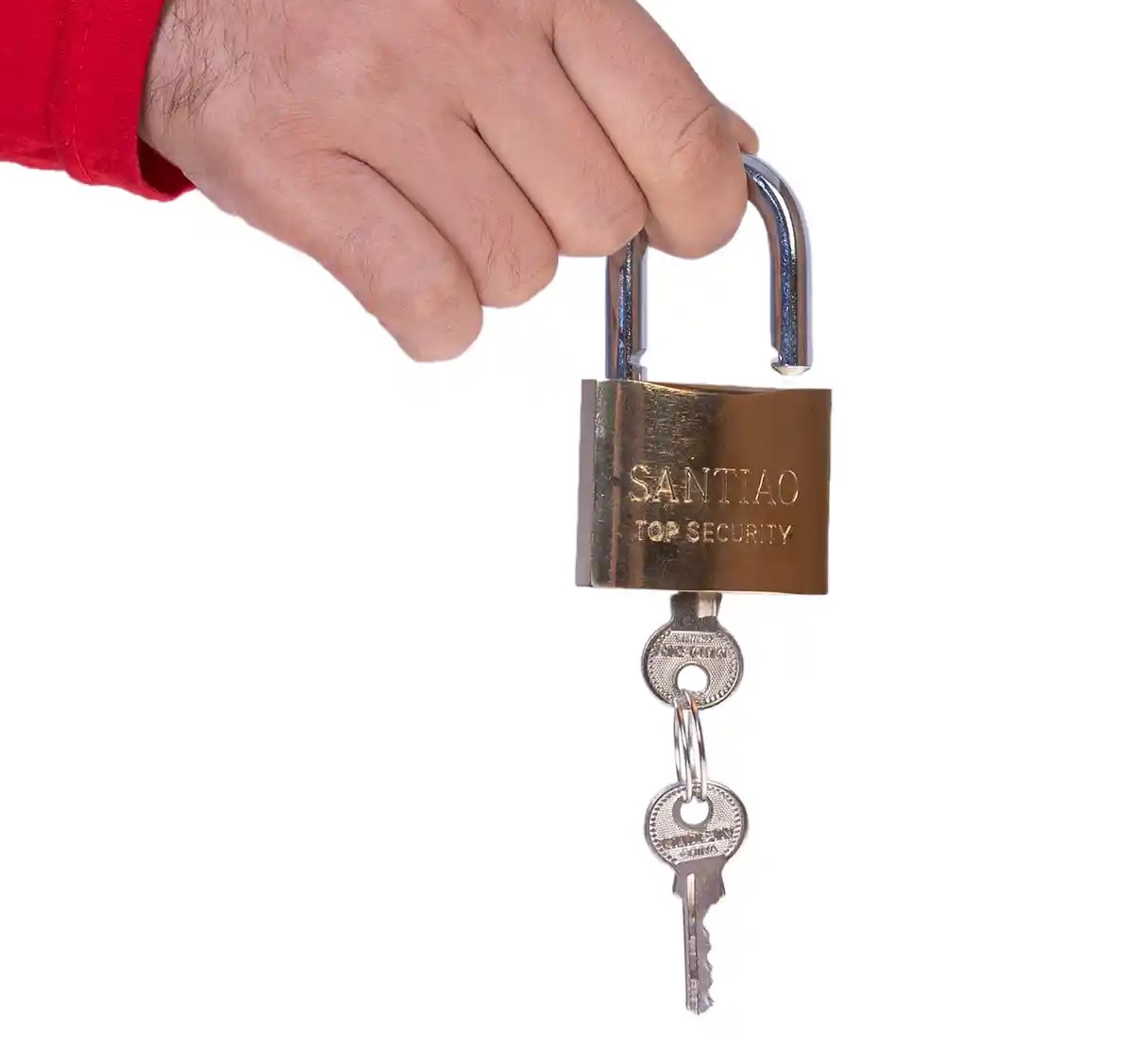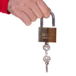 قفل آویز سانتویو سایز ۵۰ میلیمتر، دارای بدنهای از جنس برنج است که برای افزایش استحکام و مقاومت در برابر عوامل فرسایندهی محیطی، سخت کاری شده است. حلقهی ۸ میلیمتری این قفل حلقه ای، آبکاری شده است و جنس سیلندر آن تماماً از برنج است.