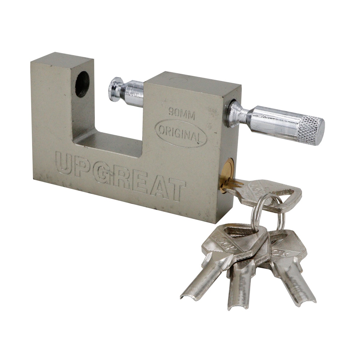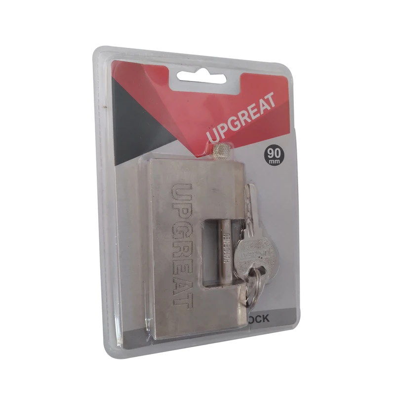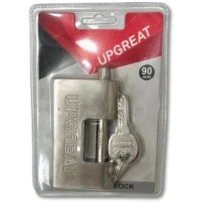 قفل کتابی آپگرید 90 دارای یه بدنه یک تیکه از جنس فولاد ضد برش است . توپی قفل از جنس برنج است که در مقابل رطوبت و ساییدگی مقاوم است هم چنین بصورتی طراحی شده که مانع از ورود کلیدهای متفرقه به آن می شود . این قفل دارای 4 کلید ویژه کامپیوتری است . در قفل کتابی آپگرید دارای میله و مغزی در یک طرف قفل دارد تا برای چفت های نزدیک به دیوار قابل استفاده باشد همچنین دهانه ی قفل سه سانت و نیم است . ضخامت میله ی قفل شونده کمتر یک سانت است .