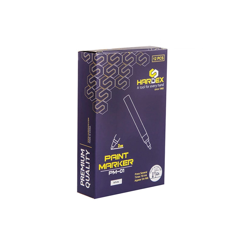 متال مارکر سفید هاردکس مدل PM-01 نیاز به چند بار فشار دادن نوک جهت خروج جوهر و علامت گذاری را دارد که عمر بالا ، مصرف کم جوهر و عدم لک گذاری ناخواسته در مواقع برخورد نوک ماژیک با سطوح را تضمین میکند ؛ خشک شدن سریع جوهر این ماژیک امکان صرفه جویی در وقت و عملکرد بالا را به کاربران میدهد.
