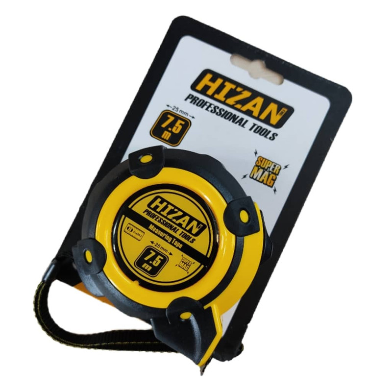 متر 7.5 متری هیزان که دارای خاصیت آهنربایی میباشد و اندازه گیری آن به صورت میلیمتر میباشد که دارای قفل کن و بند قلاف هست این متر ساخته شده از متریال با کیفیت و مقاوم میباشد و خوش دست بودن آن باعث میشود که عملیات اندازه گیری دقیق تر و راحت تر انجام شود.