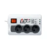 مدل P3000 دارای سه پریز کلیددار و مدار الکترونیکی هوشمند است که هنگام افزایش یا کاهش بیش از حد ولتاژ (قطع در ۲۴۵ ولت بالا و ۱۷۰ ولت پایین)، بهصورت خودکار برق را قطع میکند. پس از بازگشت ولتاژ به حالت استاندارد، با تاخیر زمانی ۳۰ ثانیه برق مجدداً وصل میشود تا از شوک الکتریکی به اجزای الکترونیکی جلوگیری شود — ویژگیای که برای دستگاههای کامپیوتری و صوتی بسیار حیاتی است.