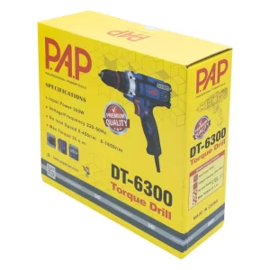 دریل یک ابزار برقی است که به منظور سوراخکاری در سطوح مختلف مانند چوب، فلز، پلاستیک بکار می رود که جزء ابزارهای ضروری هر کارگاه و صنایعی محسوب شده و در انجام انواع کارهای ساختمانی، نجاری، یا تعمیرات مورد استفاده قرار می گیرد. شرکت پی ای پی طیف گسترده ای از دریل های برقی را تولید و به بازار عرضه کرده است که دریل پیچ بند برقی پی ای پی مدل DT-6300، یکی از انواع آنها می باشد.
