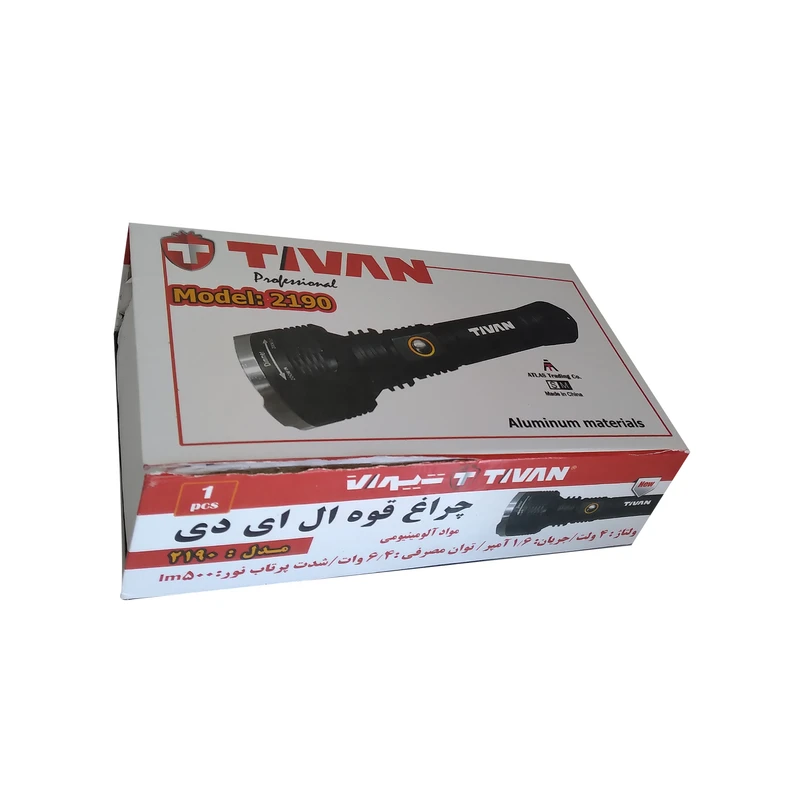 چراغ قوه شارژی تیوان مدل 2190، از سری محصولات برند تیوان است که هم موارد مصرف خانگی و هم تخصصی دارد. این چراغ قوه طوری طراحی شده است که بسیار خوشدست است و میتوانید به راحتی آن را حمل کنید. دارای یک بند روی دسته جهت راحتی کاربر دارای 5 حالت نوری مختلف : نور زیاد، نور متوسط، نور کم، بدنه ساخته شده از فلز آلومینیوم برای سبکی و مقاومت در برابر ضربه دارای یک شارژر باقابلیت اتصال به برق شهری .