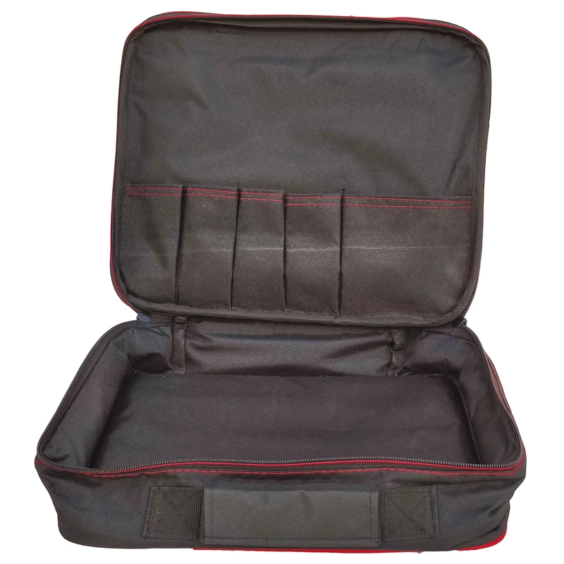 کیف دریل بوجار 35 سانتی متری برای حمل و نقل دریل و ابزارآلات جانبی آن مناسب میباشد. این کیف ابزار از جنس پارچه مستحکم ضد آب (جودان پشت پی وی سی) است و قابلیت شستشو دارد. کیف دریل بوجار 35 سانتی متری دارای طراحی منحصر به فرد میباشد و جیبهای متعدد آن برای جایگذاری ابزارآلات مختلف و دسترسی آسان به هر یک از ابزارآلات طراحی شده و جهت جلوگیری از صدمه در اثر ضربه در داخل کار از فوم استفاده شده است.